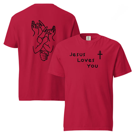 Heavy-weight "Jesus Loves You" ASL Shirt Black Font
