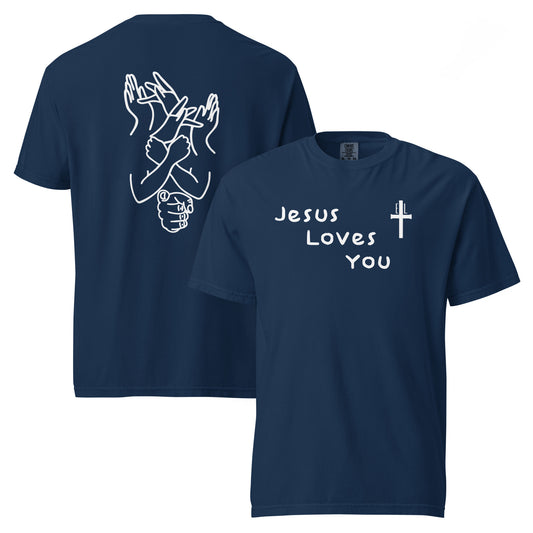 Heavy-weight "Jesus Loves You" ASL shirt White Font